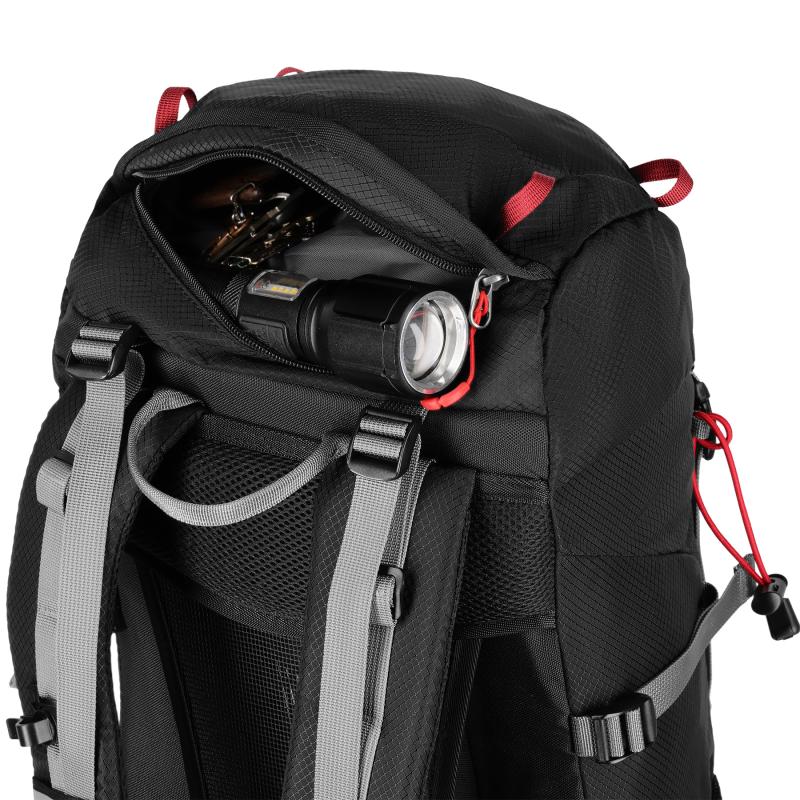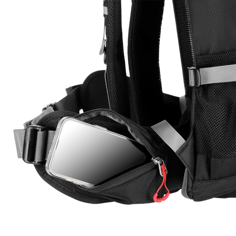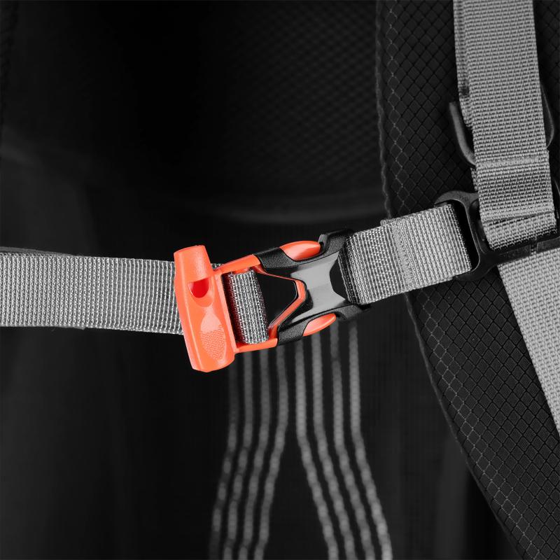 Na pracke hrudného popruhu je integrovaná záchranná píšťalka, ktorá zvyšuje bezpečnosť používateľa. Pridané úchyty umožňujú pripevniť napríklad trekové palice alebo iné príslušenstvo. Batoh má tiež dve bočné vrecká zo sieťoviny a vrecká na zips na bedrovom páse, ideálne na telefón alebo iné drobnosti.