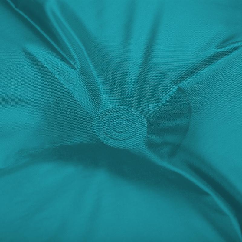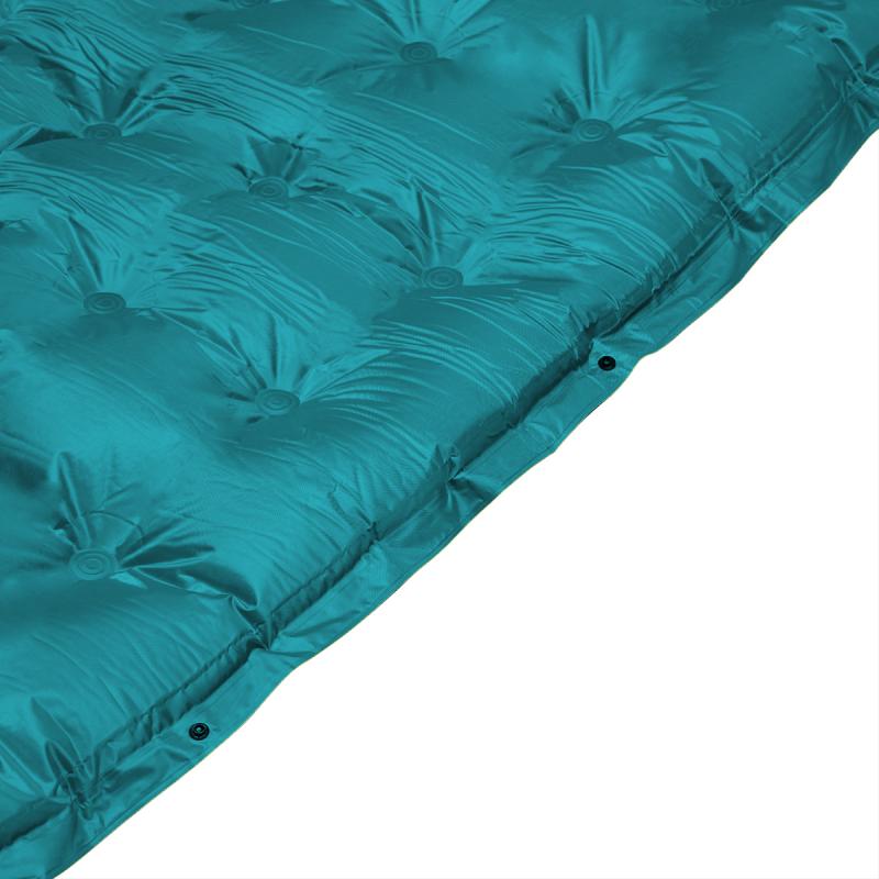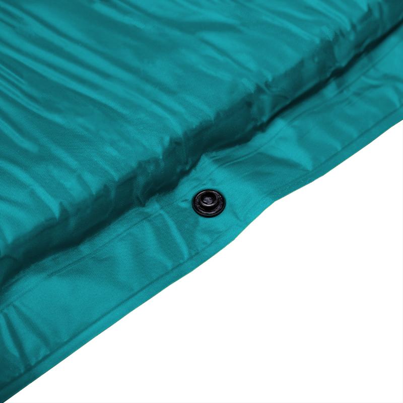 Karimatka je vyrobena z velmi odolného polyesteru 190T potaženého vrstvou PVC, což zajišťuje dlouhou životnost i při použití na nerovném povrchu. Lemy jsou vybaveny druky, které umožňují spojit více kusů do jedné velké plochy, což je ideální například pro vyplnění podlahy ve stanu. Nafukovací polštářek není odnímatelný a oproti zbytku karimatky není vyplněn pěnou, je tedy třeba ho nafouknout samostatně. Součástí balení je také opravná sada, která pomůže při případném poškození materiálu.