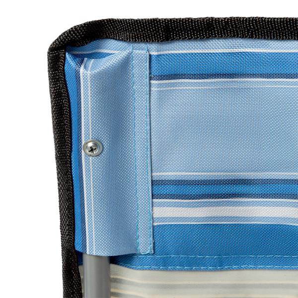 Skládací, plážové křeslo NILS Camp NC3035 je ideální k vodě, k bazénu a nebo například na dovolenou pod stan.Stabilní konstrukce je vyrobena z ocelových trubek o průměru 16 milimetrů, které jsou k sobě spojeny pomocí kvalitních nýtů. Potah je vyroben z polyesteru v úpravě oxford 600D. Tato tkanina je maximálně odolná vůči poškození a povětrnostním vlivům jako je déšť a sníh. Kombinace kvalitní konstrukce a odolné tkaniny zajišťuje nosnost až 120 kilogramů. Kruhové, plastové nožičky zvyšují stabilitu křesla, zamezují jeho pohybu a v měkkém podloží (například písek) se neboří.