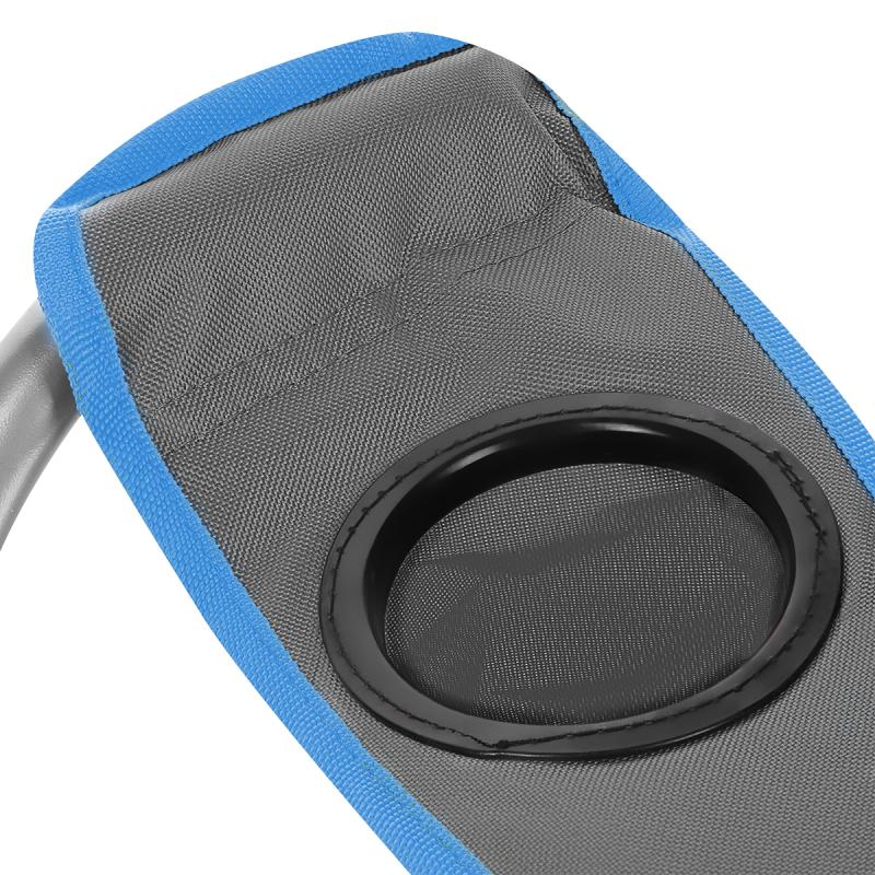 Opierky na lakte majú možnosť regulácie výšky jednoduchým posunom zadnej časti po profile konštrukcie. Pravá opierka lakťa je opatrená košíkom, do ktorého sa pohodlne zmestí menšia fľaša, alebo vysoká pohár. Pre ľahké prenášanie je možné kreslo zložiť do dodávaného vaku s popruhom cez rameno.