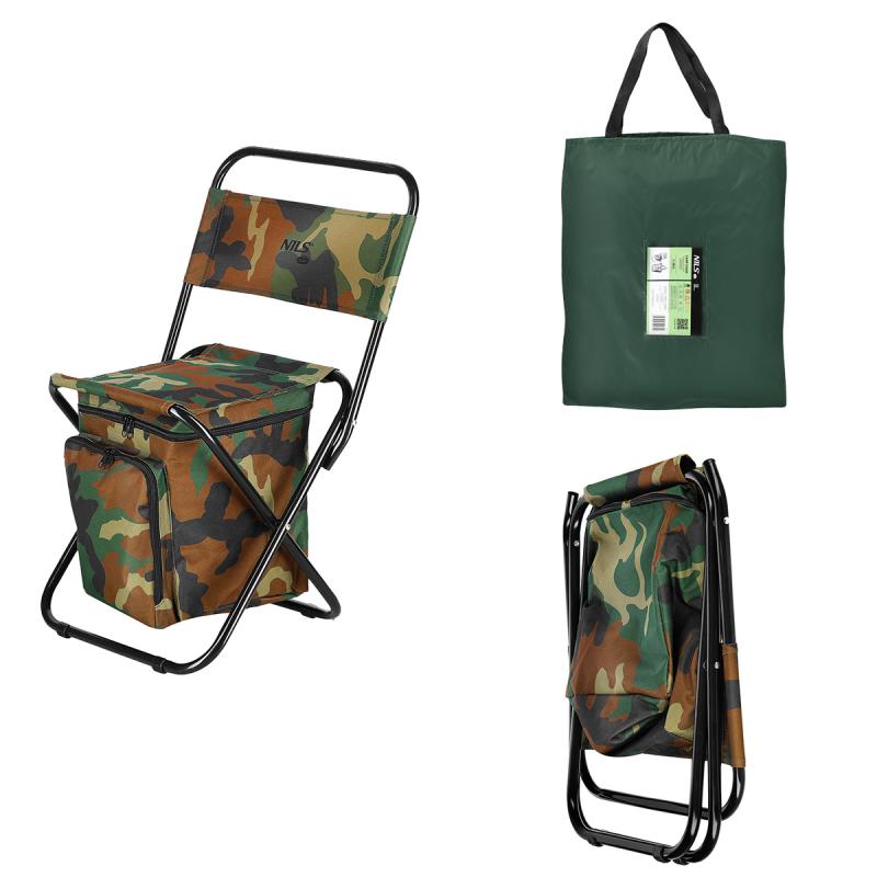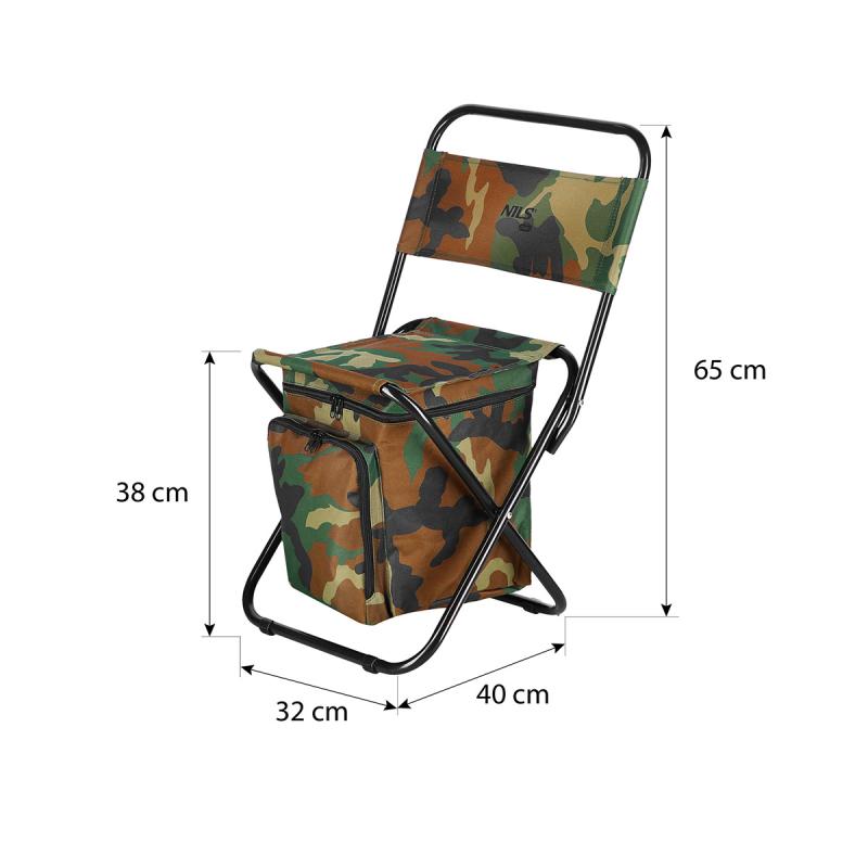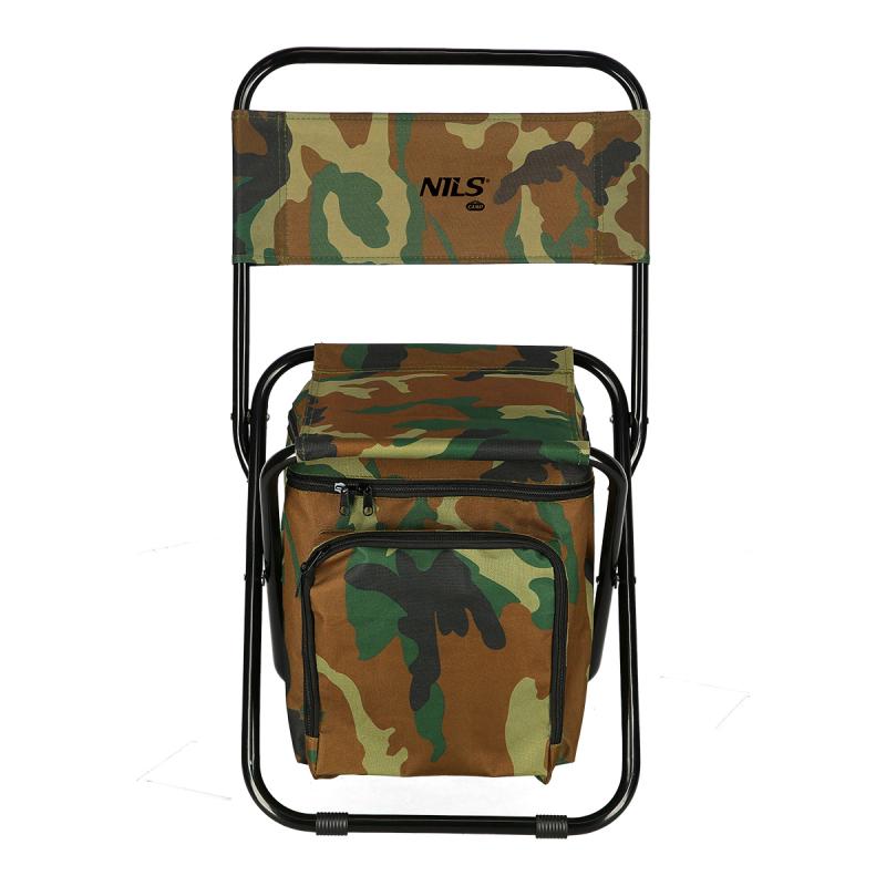 NILS CAMP Skladacia stolička s úložným priestorom NC3012 maskáčová