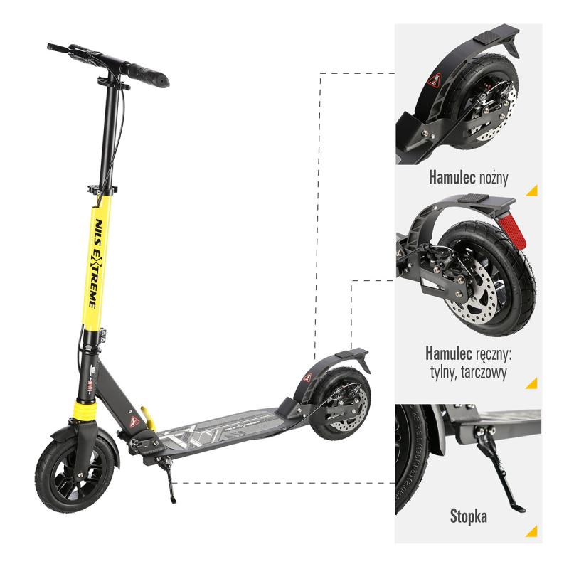 Kolobežka NILS Extreme HM208T je vhodná pre deti aj dospelých. Charakteristikou modelu HM208T sú tlmiče na prednom i zadnom kolese a mechanická, kotúčová brzda.
