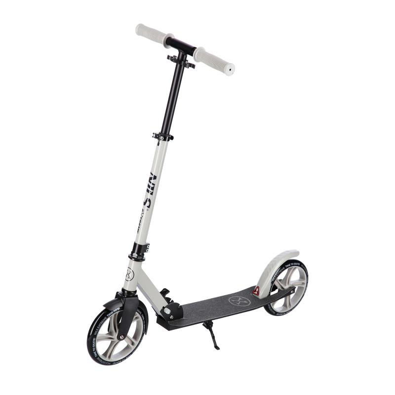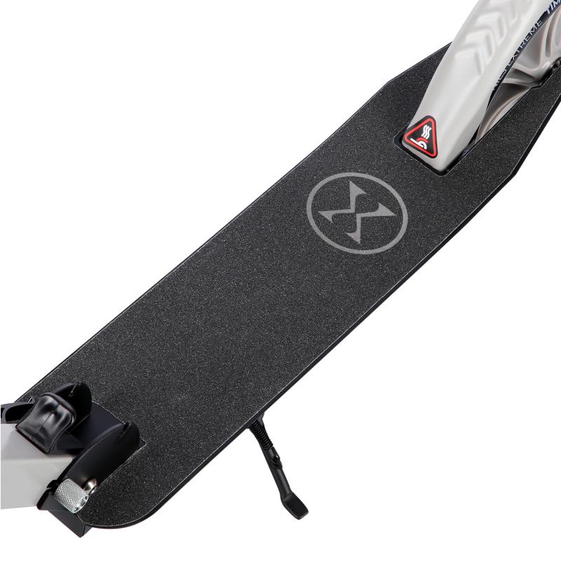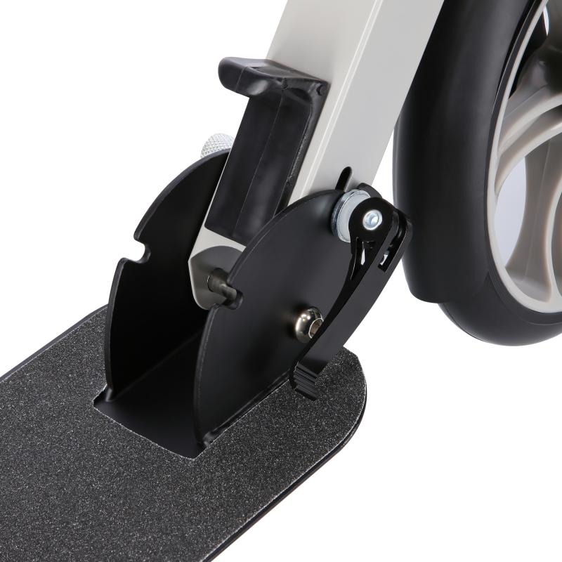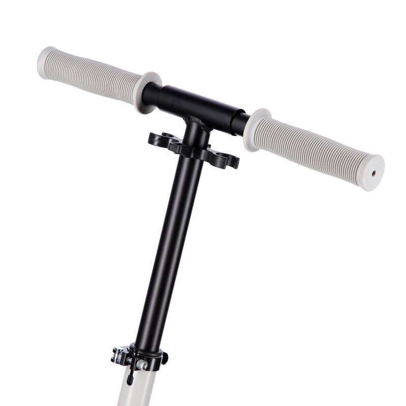 Zadní blatník slouží jako přítlačná brzda. Rídítka je možné při skládání sklopit a pro maximální pohodlí během jízdy jsou opatřena gumovými rukojeťmi. Výšku řídítek lze nastavit do 3 úrovní v rozsahu od 75 do 95 cm.