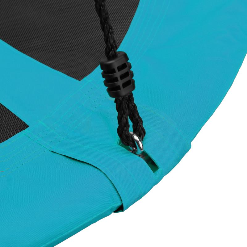 Sedací plocha je vyrobena z kombinace polypropylenu a polyesteru v úpravě 600D Oxford, takže je bezpečná, pohodlná a odolává povětrnostním vlivům. Díky tomu může zábava trvat mnoho hodin. Rám je chráněn speciální pěnou. Lana jsou z velmi odolného polyethylenu. Vše pro maximální bezpečnost, komfort a odolnost vůči dešti a sněhu. To znamená, že není nutné uklízet vybavení, jakmile začne pršet.