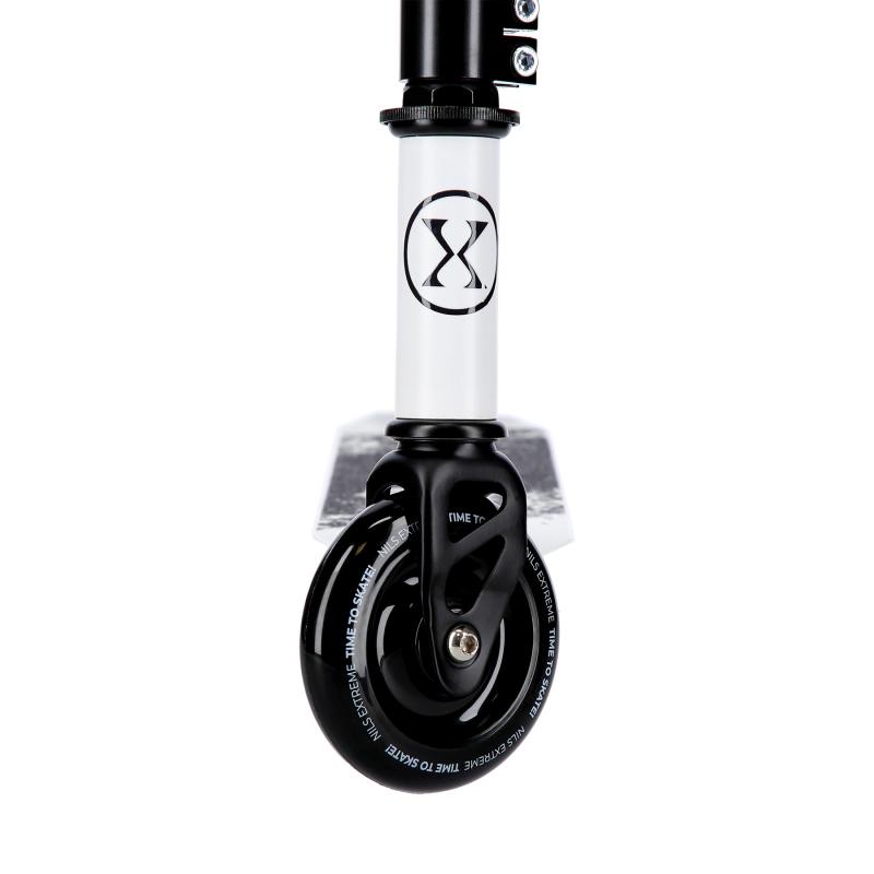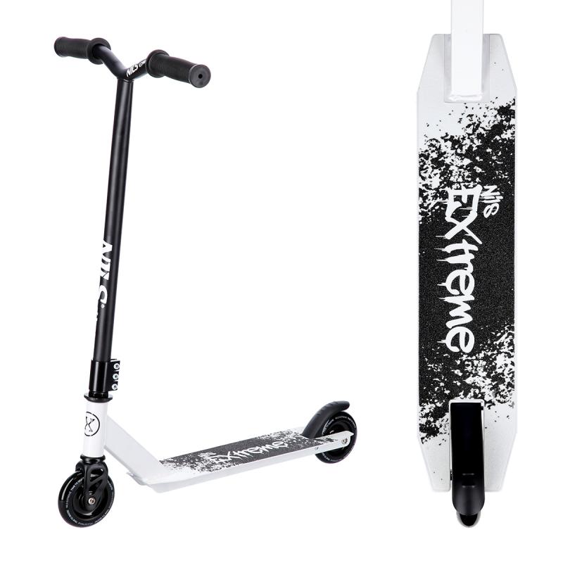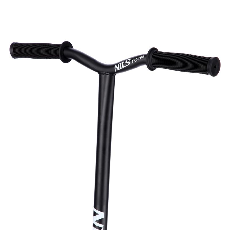 Freestyle kolobežka NILS Extreme HS138 určená pre deti a tínedžerov, ktorá sa skvele hodí na asfaltové povrchy, skateparky a chodníky.\nMaximálna hmotnosť používateľa je 100 kg a rám a riadidlá sú vyrobené z odolnej a pevnej ocele, ktorá zaručuje stabilitu a bezpečnosť pri používaní. Ložiská triedy ABEC7 umožňujú dlhé jazdy s minimálnou námahou. Zadná nožná brzda zabezpečuje bezpečné používanie a umožňuje jednoduché zastavenie kolobežky. Zákazníci pri výbere tohto modelu venujú pozornosť jeho odolnosti a jednoduchému používaniu. Vďaka použitiu vysoko kvalitných materiálov vydrží kolobežka NILS Extreme roky.\nHS138 je freestyle kolobežka. Freestyle kolobežky nemajú mechanizmus na skladanie konštrukcie alebo nastavenie výšky riadidiel - namiesto toho majú zosilnenú platformu, riadidlá a pevné zvárané línie spájajúce kľúčové prvky - to zvyšuje tuhosť konštrukcie. Najdôležitejšou vlastnosťou freestyle kolobežky je nízka hmotnosť – čo uľahčuje vykonávanie trikov, a odolnosť – čo minimalizuje možnosť zlyhania.\nPamätajte, že pri trikovej jazde sa oplatí vybaviť sa prilbou a chráničmi!\n\nParametre:\n\n- Materiál: oceľ, hliník, guma\n- Rozmery:\n\n- dĺžka: 62 cm\n- šírka: 46,5 cm\n- výška: 78 cm\n- Výšku riadidiel nie je možné upraviť\n- Skladací: nie\n- Brzda: áno, zadná nožná\n- Rozmery platformy:\n\n- dĺžka: 44 cm\n- šírka: 10 cm\n- Typ materiálu na platforme: hliník\n- Kolieska: PU 100 x 24 mm\n- Ložiská: ABEC7\n- Maximálna nosnosť: 100 kg\n- Hmotnosť produktu: 2,8 kg\n- Použitie: rekreácia\nPoznámky:\n\n- Nie je určené pre komerčné použitie\n- V súlade s normou EN 14619:2015\n- Záruka 24 mesiacov