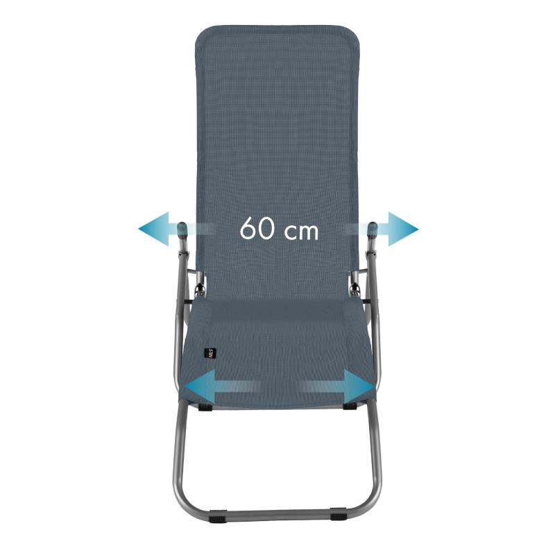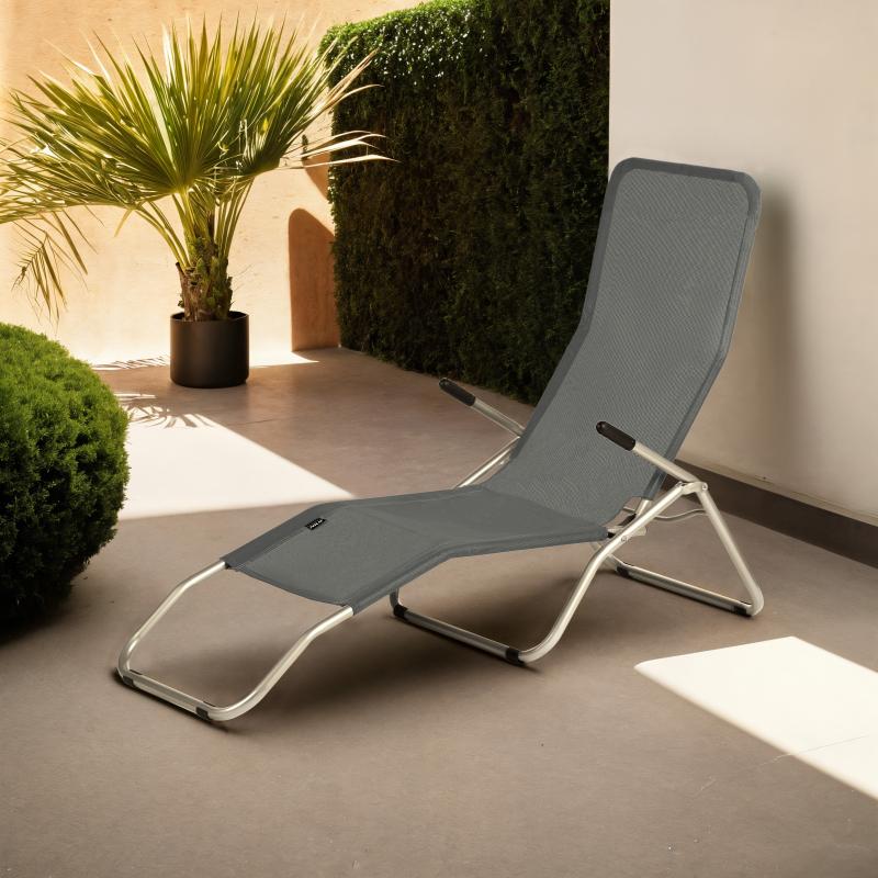 Jedná se o univerzální lehátko, které se osvědčí za každých podmínek. Za jeho stabilitu ručí ocelové profily o průměru 24 mm. Díky pevné konstrukci a materiálu textilen (polyesterové vlákno potažené vinylem), který je velmi odolný, je maximální hosnost lehátka až 100 kg. Součástí jsou také protiskluzové nožky, které zabraňují posouvání.