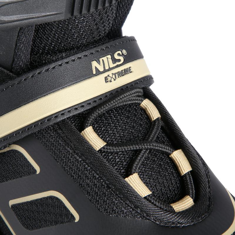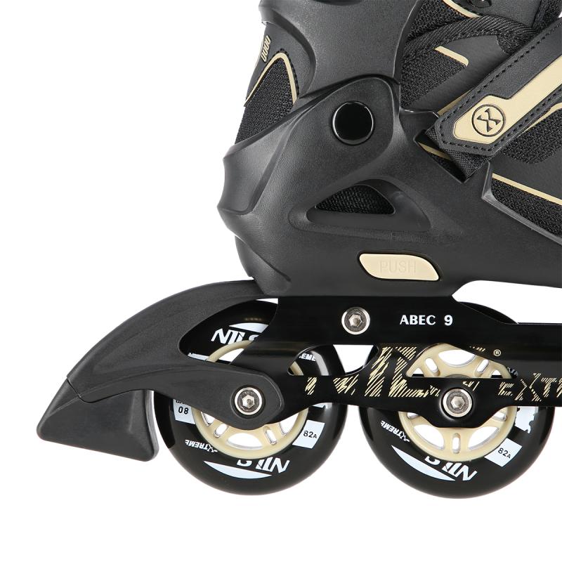 Kolečkové brusle NILS Extreme NA14174 jsou vhodné k rekreační jízdě po tvrdém a rovném povrchu. Podvozek brusle je vyroben z hliníku a je osazen PU kolečky o tvrdosti 82A s ložisky ABEC 9. Poloměkká bota je vyrobena z polypropylenu, který je velice odolný. Vložka je profilovaná a prodyšná. Brusle je možné pomocí stisku tlačítka a posunutí přední částí boty nastavit do jedné ze čtyř velikostí. Zapínání je řešeno klasickou trojkombinací (dvousekční přezka, pásek se suchým zipem a šněrování). Model NA14174 je určen pro začínající a středně pokročilé bruslaře.