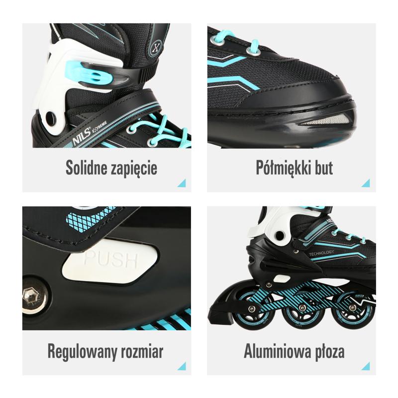 Kolečkové brusle NILS Extreme NA1169 jsou určeny k rekreačním projížďkám pro začínající a středně pokročilé bruslaře. Model NA1169 v sobě spojuje poutavý design a kvalitní materiály.