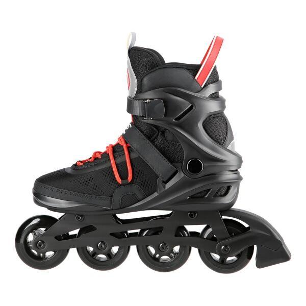 Hliníkový podvozek je osazen PU kolečky o průměru 80 milimetrů. Tvrdost koleček je 82A, ta je ideálním kompromisem mezi rychlostí, životností a pohodlím. Kolečka jsou osazena ložisky ABEC 7 pro svižnou a plynulou jízdu. Skelet brusle je vyroben z polypropylenu, který dobře přenáší energii z odrazu na kolečka a zároveň vydrží i připadný pád. Pohodlná, poloměkká bota je vyrobena z kombinace semiše, síťoviny MESH - pro dobrou prodyšnost, EVA a pěny o vysoké hustotě. Vnitřní bota nemá krytou špičku, takže dobře větrá a noha se méně potí. Zapínání je řešeno klasickou trojkombinací - šněrování, řemínek se suchým zipem a dvousekční přezka. Pravá brusle je osazena brzdou.