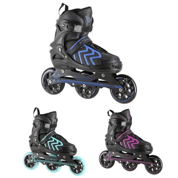 Hliníkový podvozok je osadený tromi mäkkými PU kolieskami s ložiskami ABEC7 pre svižnú jazdu. Kolieska s veľkým priemerom (90 mm pre veľkosť S a M, 100 mm pre veľkosť L) je možné vymeniť za 4 menšie kolieska s maximálnym priemerom 84 mm pre veľkosť S a M, alebo 90 mm pre veľkosť L. Vonkajšia topánka je pomocou stlačenia tlačidla nastaviteľná do štyroch veľkostí, toto riešenie umožňuje precízne prispôsobenie veľkosti podľa aktuálnych potrieb alebo sa používa ako "rastúca topánka", ktorá "rastie" spolu s nohou dieťaťa. Na špičke sú ventilačné otvory pre maximálnu priedušnosť. Vnútorná topánka je vyrobená z kombinácie semišu, sieťoviny MESH, EVA a peny s vysokou hustotou. Zapínanie je riešené klasickou trojkombináciou - šnurovanie, remienok so suchým zipsom a dvojsekčná pracka.