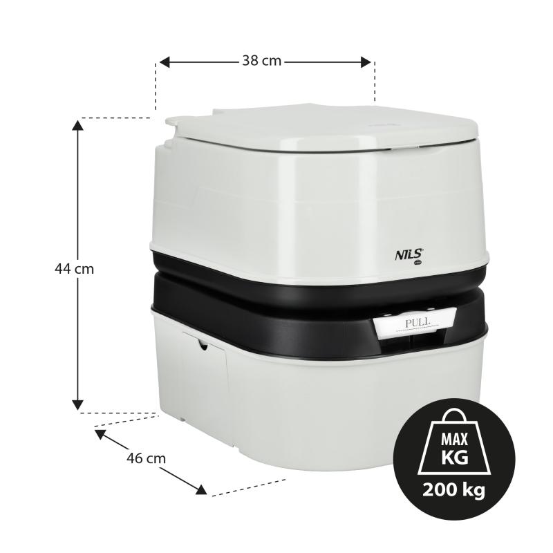 NC0023 má vysokou nosnost až 200 kg, což umožňuje bezpečné používání i lidmi s větší tělesnou hmotností. Toaleta má kompaktní rozměry (46 x 44 x 38 cm), takže ji snadno umístíte do stanu, letního domku nebo karavanu. I přes svou pevnou konstrukci si zachovává relativně nízkou hmotnost, což usnadňuje její přepravu a obsluhu. Vysoká odolnost materiálu a snadné čištění zaručují, že vydrží mnoho sezón.