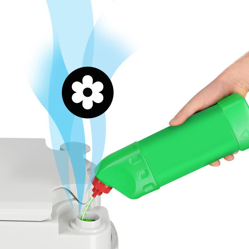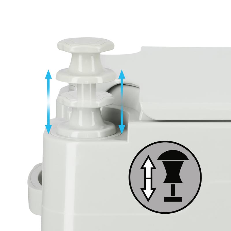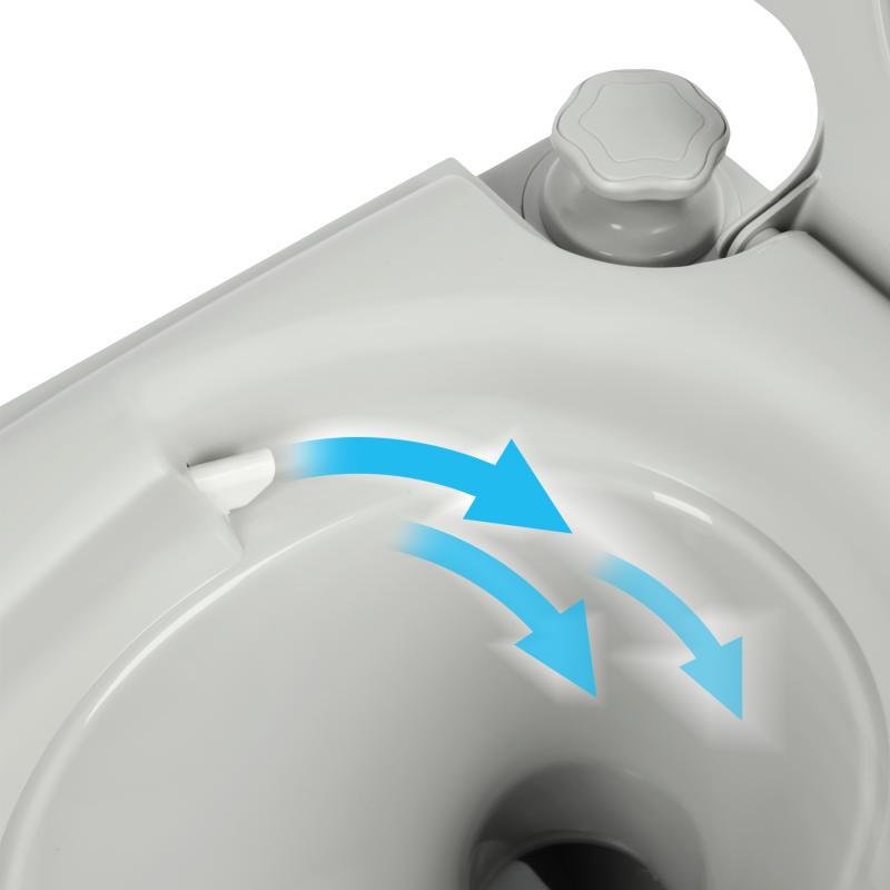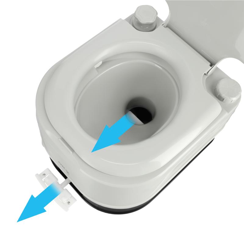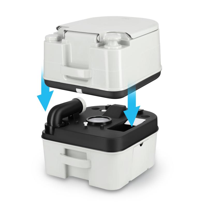 Toaleta je vyrobena z odolného a vlhkuvzdorného PP (polypropylenu). Použití těsného šoupátkového ventilu účinně izoluje nečistoty a zabraňuje úniku pachů. Splachovací systém je založen na jednoduchém a spolehlivém ručně poháněném mechanismu, který umožňuje používat toaletu bez přístupu k elektřině nebo vodovodním instalacím. Široké prkýnko a ergonomická výška zajišťují pohodlí pro všechny uživatele – bez ohledu na věk.