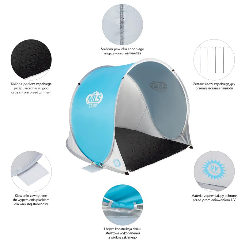 Nils NC3173 modro-šedý samorozkládací plážový stan