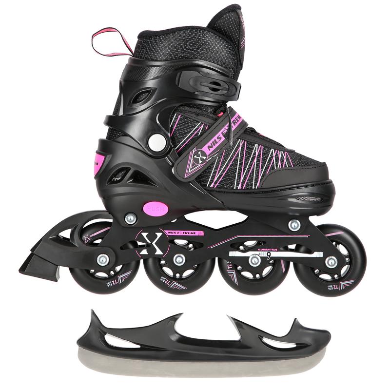 NILS Extreme NH11912 A jsou celoroční brusle pro všechny milovníky letního i zimního bruslení. Brusle mají vyměnitelný podvozek, takže se dají použít buď jako klasické In-line, nebo lední brusle.