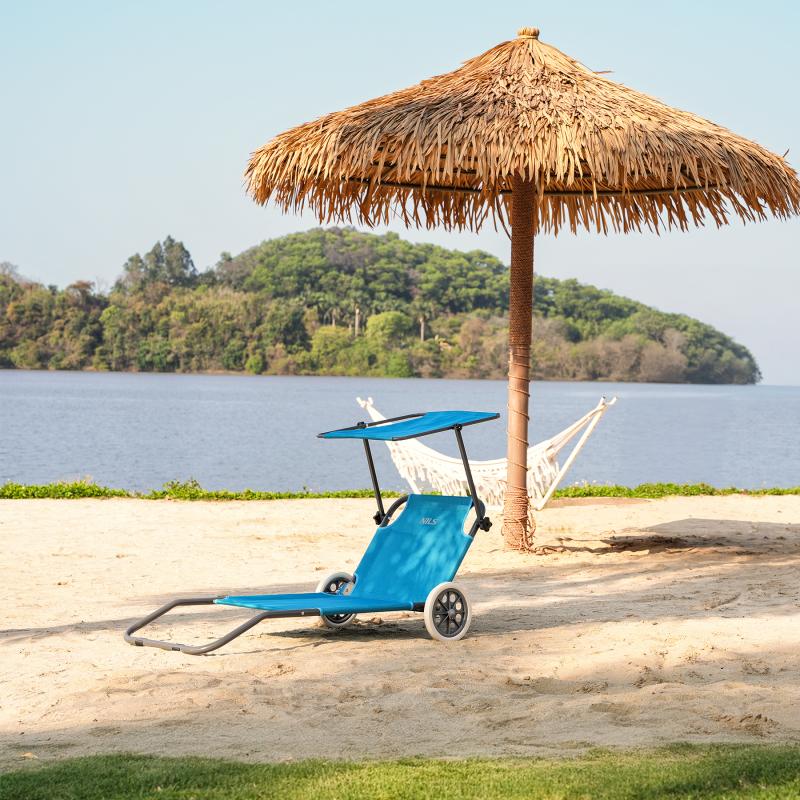 Nils Plážové lehátko so strieškou Camp NC3307 modré