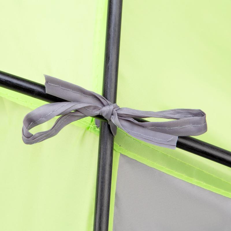 Stan je dodáván složený v tašce opatřené uchem pro snadné přenášení. Po vytažení z tašky se stan postaví za pomoci tří sklo-laminátových tyčí, které se provléknou tunely na polyesterovém tropicu. Podlaha o rozměrech 105 x 210 cm a výška 110 cm umožňují úkryt před sluncem jak dětem, tak rodičům. Použitý materiál odolá i malé, dešťové přeháňce.