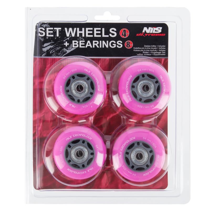 Nils PU kolečka s ložisky EXTREME 64x24mm ABEC 7 růžové