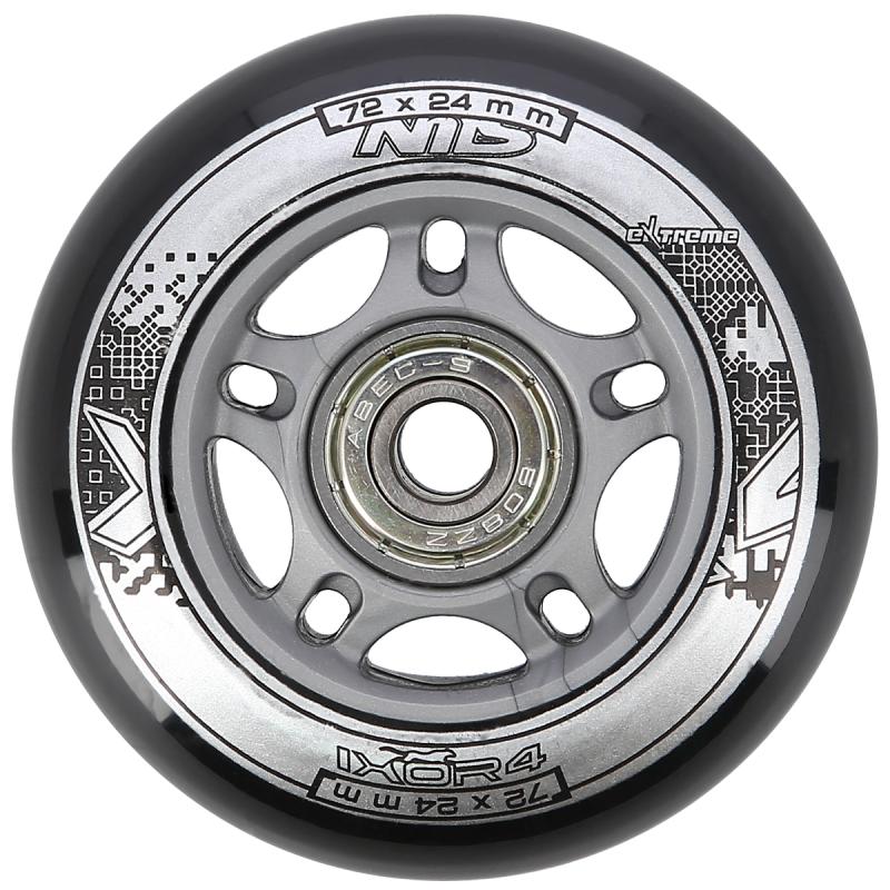 Nils Sestava černých PU koleček 72x24 + ložiska ABEC9 EXTREME