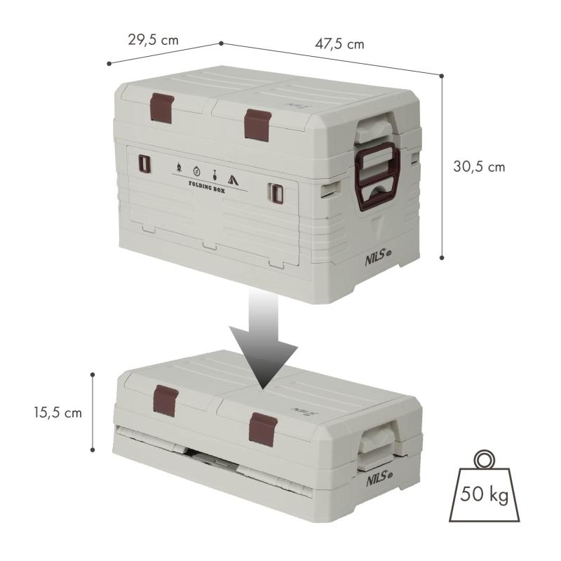 - Rozmery zloženého boxu: 47,5 x 29,5 x 15,5 cm
