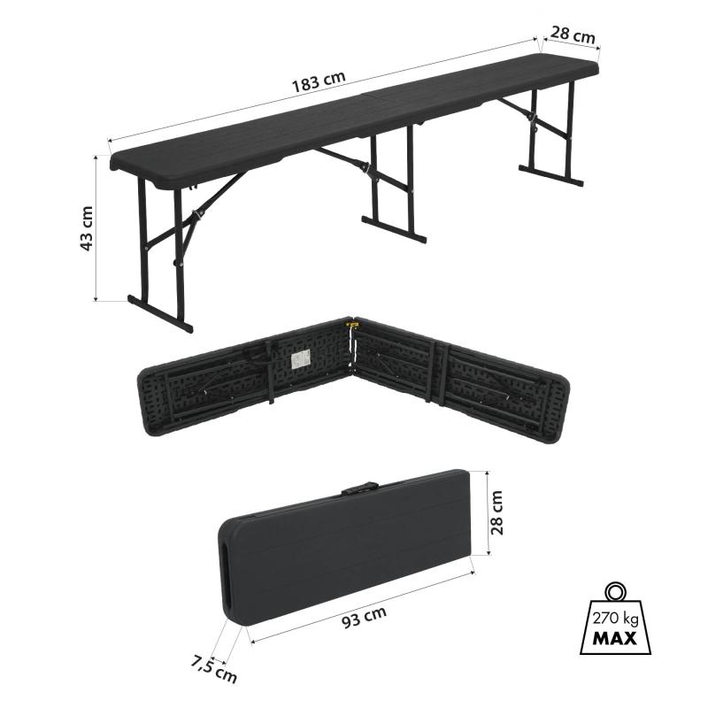Napriek svojej nízkej hmotnosti sa lavička NC3404 vyznačuje výnimočnou stabilitou a robustnosťou. Maximálna nosnosť až 270 kg umožňuje bezpečné používanie viacerými osobami naraz. S dĺžkou 183 cm poskytuje dostatok miesta na sedenie pri stole a jej výška 43 cm sa dokonale hodí ku štandardným piknikovým a cateringovým stolom.