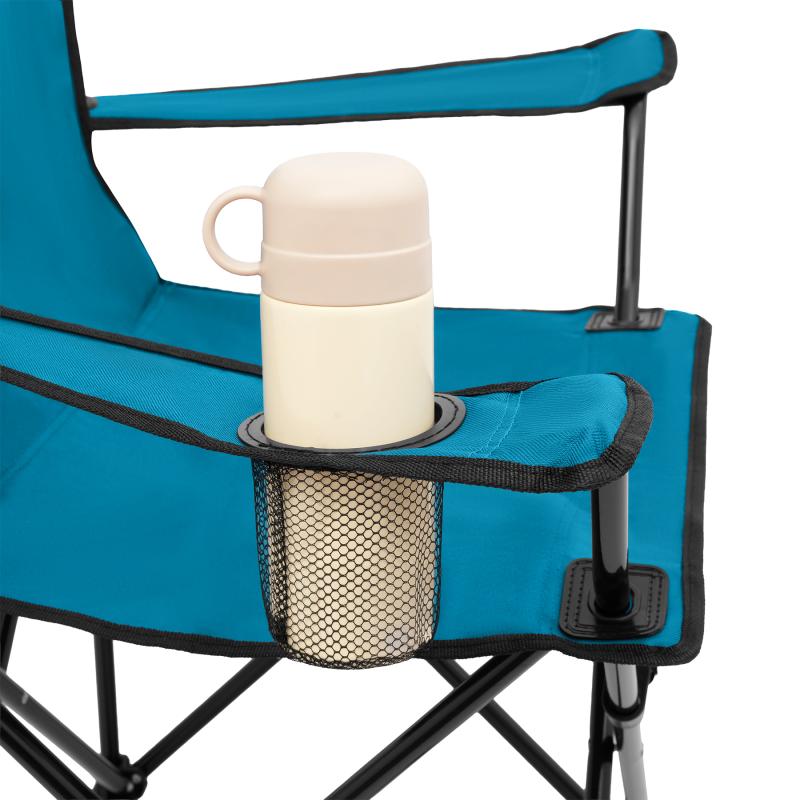 NILS Camp NC3301 je turistická židle doplněná o boční držák nápojů. Její konstrukce zajišťují komfortní odpočinek bez ohledu na místo – ať už jde o dovolenou v kempu, piknik v parku a nebo posezení s přáteli na zahradě. Sedák a opěradlo jsou vyrobeny z odolného polyesteru 600D s PE zátěrem, odolného proti oděru a vlhkosti. Černý lem zajišťuje čistý vzhled a celou židli drží stabilní ocelový rám s černým práškovým lakem.