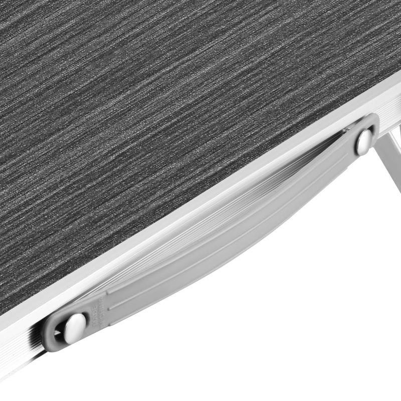 Rám a nohy stolu jsou vyrobeny z hliníku, což zajišťuje lehkost a zároveň vysokou stabilitu. Hliník je materiál odolný vůči korozi a stůl je ideální pro použití venku.