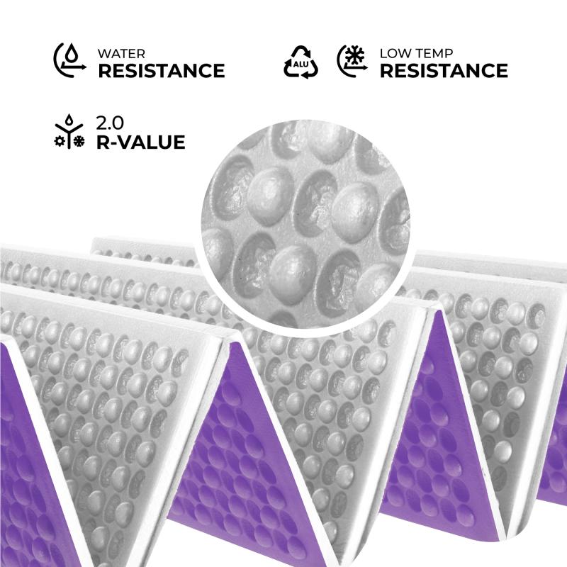Jadro karimatky je vyrobené z technickej peny XPE – materiálu, ktorý sa vyznačuje nízkou hmotnosťou, vynikajúcou odolnosťou proti deformácii a mechanickému poškodeniu. Pena XPE nesaje vodu, čo znamená, že karimatka zostáva suchá a pripravená na použitie aj v náročných terénnych podmienkach.