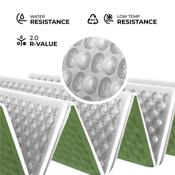 - Materiál: XPE (chemicky zosieťovaná polyetylénová pena), hliník