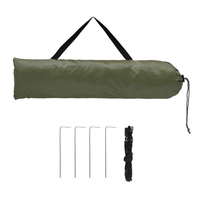 Kabina je vyrobena z polyesteru 190T s polyuretanovým zátěrem, který zajišťuje voděodolnost až do 3000 mm vodního sloupce. To znamená spolehlivou ochranu před deštěm a možnost použití i v chladnějších či proměnlivých podmínkách, nejen během letních dní.