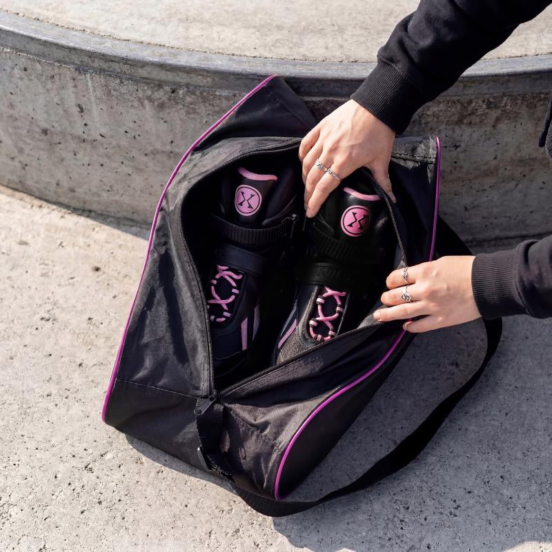 Taška umožňuje bezpečné a komfortní přenášení jednoho páru kolečkových bruslí, takže už není nutné nosit vybavení v ruce. Skvěle se hodí pro městské použití i volnočasové aktivity venku.Ergonomické nošení přes rameno