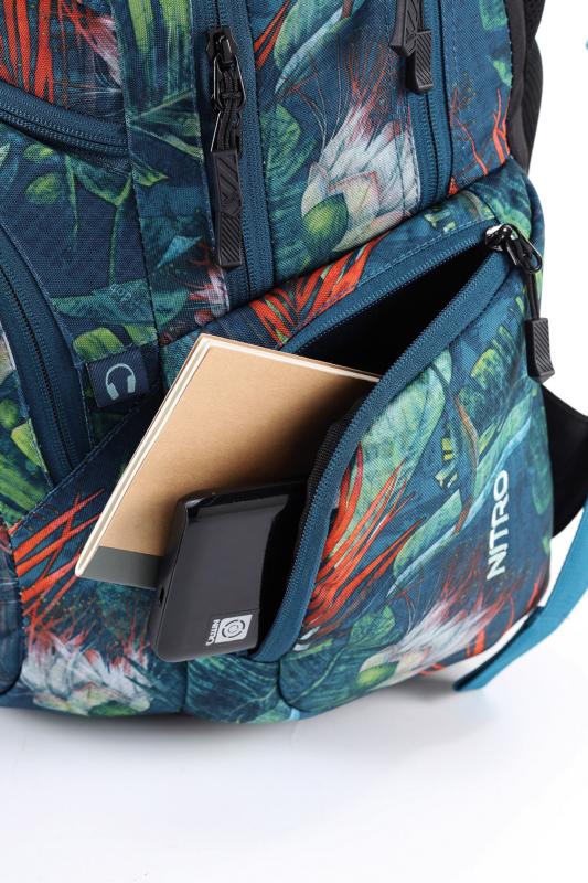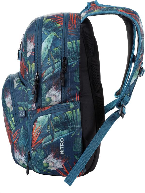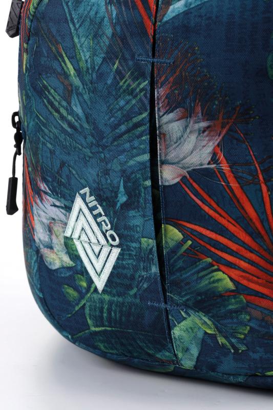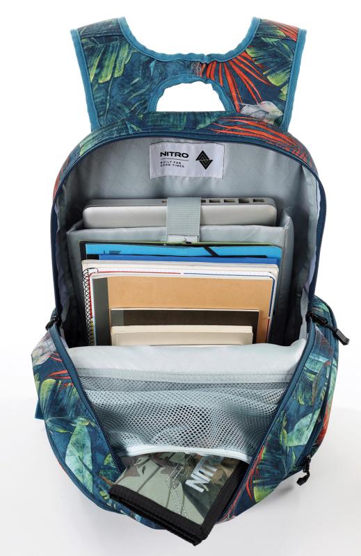 Fleecem vystlaná kapsa na brýle a podobně choulostivé věci, dvě hlavní prostorná oddělení, kapsa na tablet, vypolstrovaná kapsa na 17" notebook, popruh na nesení skateboardu, postranní kapsa na zip, postranní síťovinová kapsa na lahev. Objem 37 l. Rozměry přibližně 52 x 38 x 23 cm. Hmotnost 980 g.Doplňující informace: