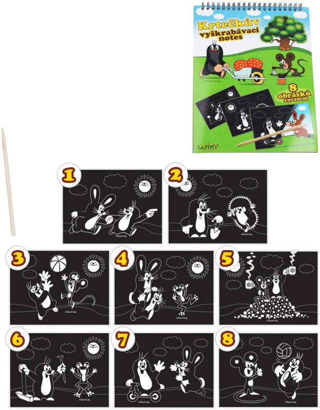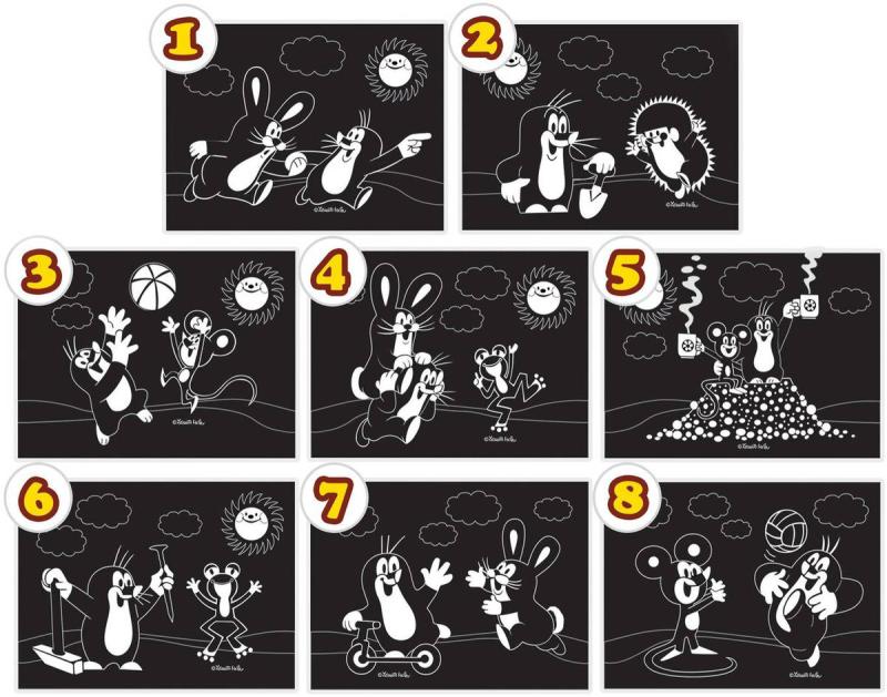 Notes vyškrabovací obrázky Krtek (Krteček) 8 listů set se škrabacím perem