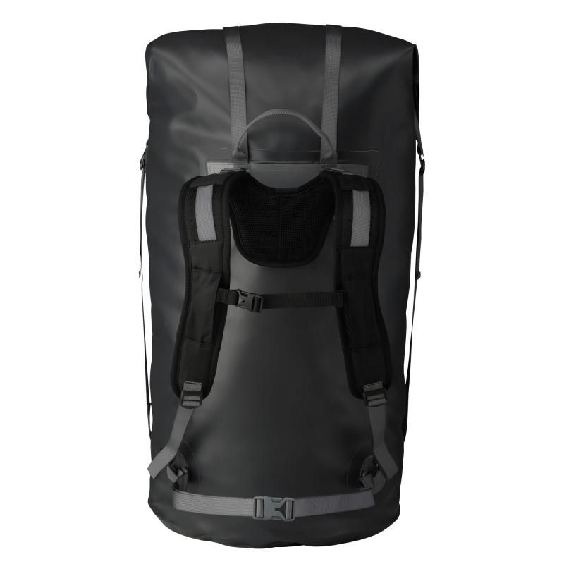 Pro maximální využitelnost je vak vybaven čtyřmi kompresními popruhy s odolnými hliníkovými sponami, které umožňují stabilizovat a upravit objem nákladu podle potřeby. Nastavitelný batohový systém s polstrovanými ramenními popruhy zajišťuje pohodlné přenášení i plně naloženého vaku. Nosný systém lze kompletně odejmout, což je zvláště praktické při letecké přepravě.