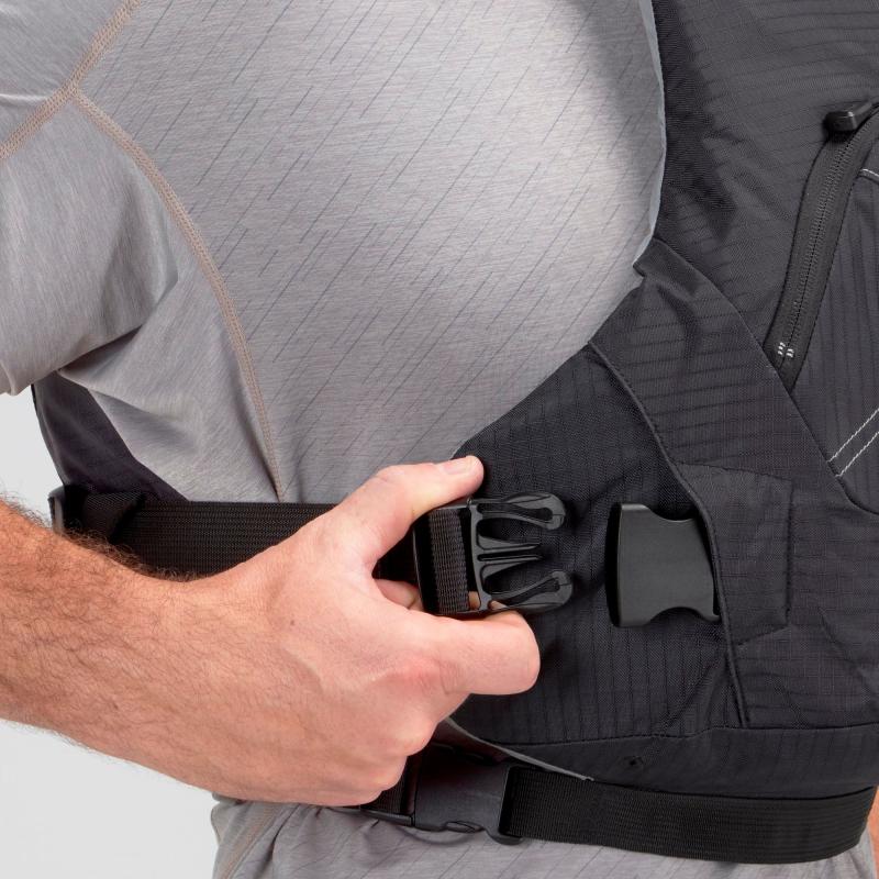 Ion 2025 staví na čistém, praktickém provedení bez zbytečností, které by překážely při pádlování či plavání. AirMesh podšívka řídí vlhkost a teplo, 6 nastavovacích bodů (ramena, boky, pas) pomůže vestu „uzamknout“ k tělu bez přepínání popruhů. Chráněný lash tab snižuje riziko zachycení, strap garages uklidí volné konce pásků a 3M reflexní akcenty zvyšují viditelnost za šera. Přední half-moon kapsa na zip pojme nezbytnosti a nepřidává objem. Vesta je kompatibilní s NRS Swig PFD Hydration Packem (#40022.02) pro celodenní hydrataci.