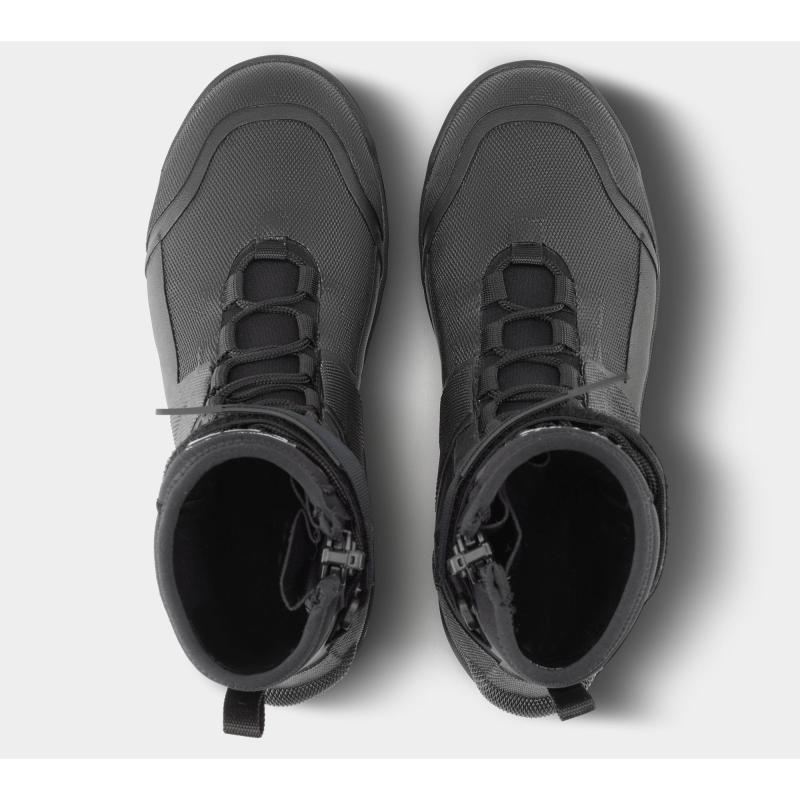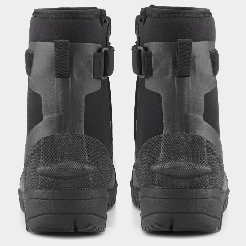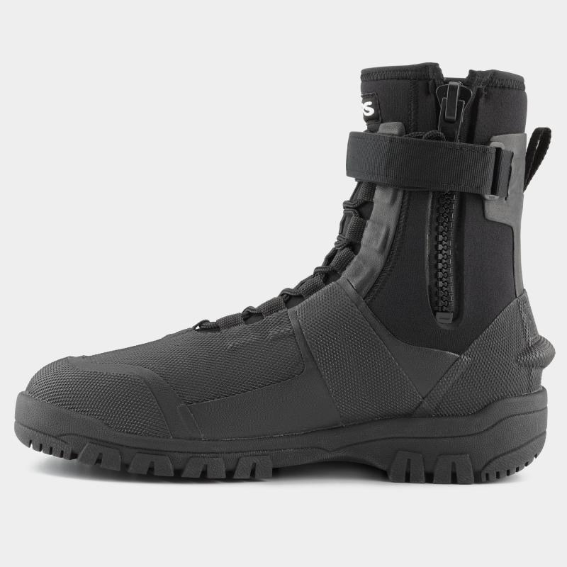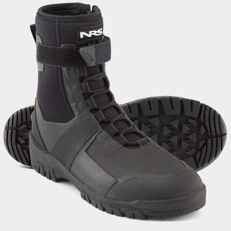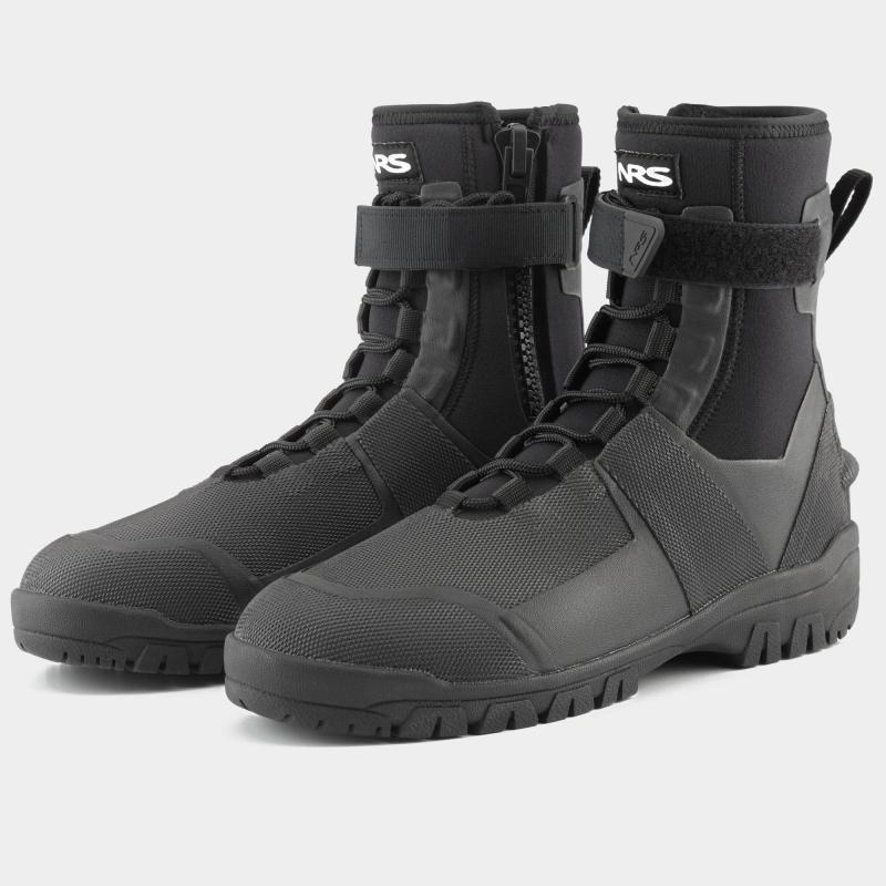 NRS Workboot Wetshoes sú mimoriadne odolné a spoľahlivé topánky s pevným podrážkou, ktoré si obľúbili záchranári, profesionáli aj členovia jednotiek Navy SEAL. Vďaka 5 mm neoprénu a agresívnemu dezénu je vaša noha v bezpečí a suchu na mokrom i klzkém povrchu.NRS Workboot Wetshoes kombinujú 5 mm neoprénový zvršok, syntetickú kožu a odolnú gumovú podrážku s výrazným lug dezénom pre výnimočnú trakciu. Vložka z 7 mm neoprénu absorbuje nárazy, zatiaľ čo vzadu je YKK zips, šnurovanie a suchý zips pre precízne a bezpečné prispôsobenie. Vysoko odolné panely zvyšujú životnosť a pútko na päte uľahčuje nasadenie – topánky sú pripravené na náročné nasadenie na vode aj brehu