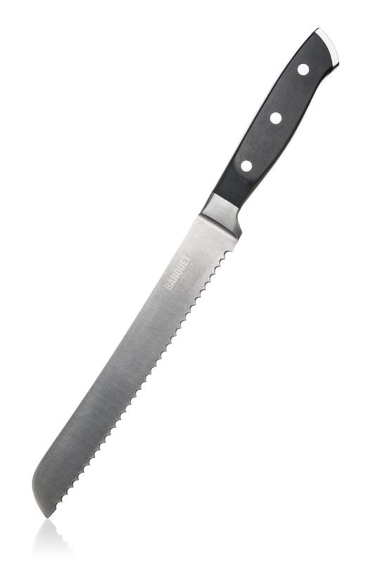Nůž na chléb s celkovou délkou 33,5 cm a čepelí dlouhou 20 cm je vyroben z odolné nerezové oceli, která zajišťuje dlouhou životnost a snadnou údržbu. Tento nůž je navržen tak, aby usnadnil krájení chleba a dalších druhů pečiva bez jeho rozdrcení nebo rozmačkání. Díky vhodné délce čepele se dobře ovládá a umožňuje přesné řezy i u větších bochníků.