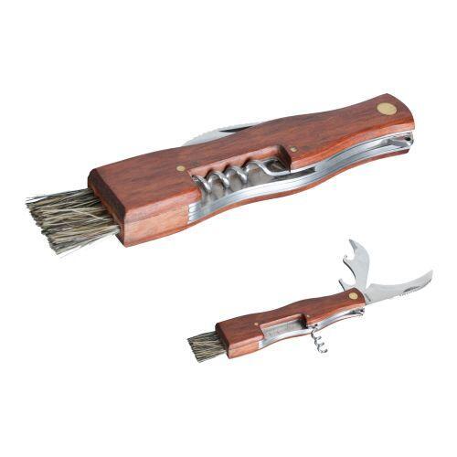 Nôž na huby zatvárací so štetcom + otvárače, drevená rukoväť