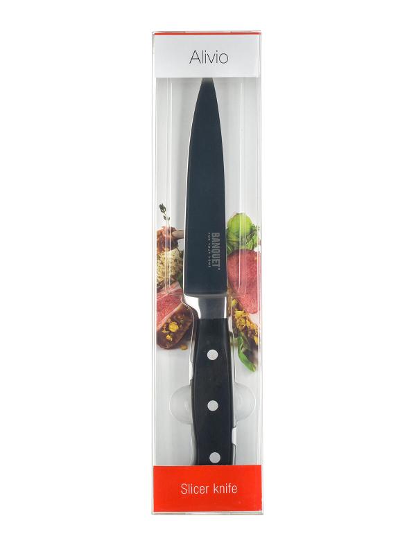 Plátkovací nůž s délkou 28,5 cm a čepelí dlouhou 15 cm je vyroben z odolné nerezové oceli, která zajišťuje dlouhou životnost a snadnou údržbu. Tento nůž je ideální pro přesné plátkování masa, uzenin nebo zeleniny, což usnadní přípravu pokrmů a zvýší efektivitu vaření.