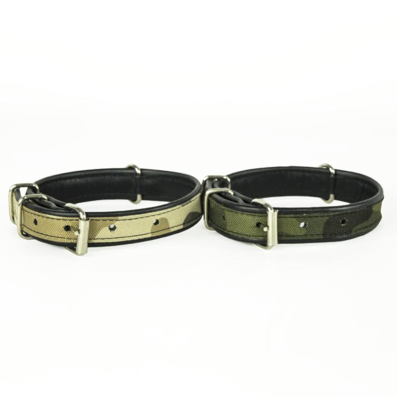 Kožený obojek pro psy s maskáčovým designem.Kvalitní prošívání a odolná kovová spona. Kroužkování pro pohodlné umístění psích známek nebo jiných doplňků.