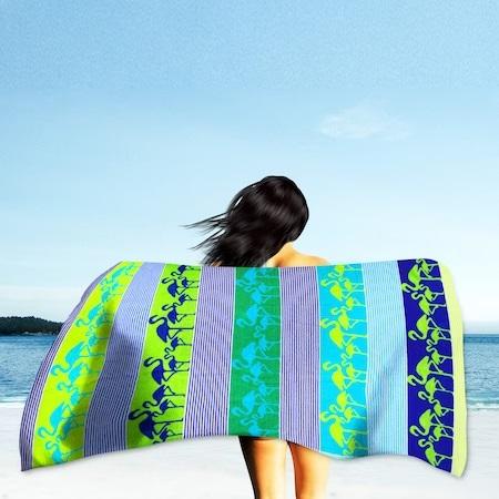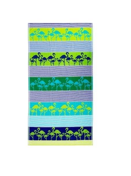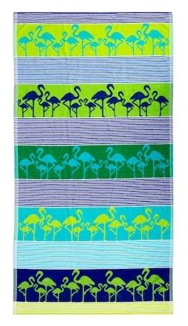 Obojstranný plážový uterák Lovely Home Crazy Flamingo zelený