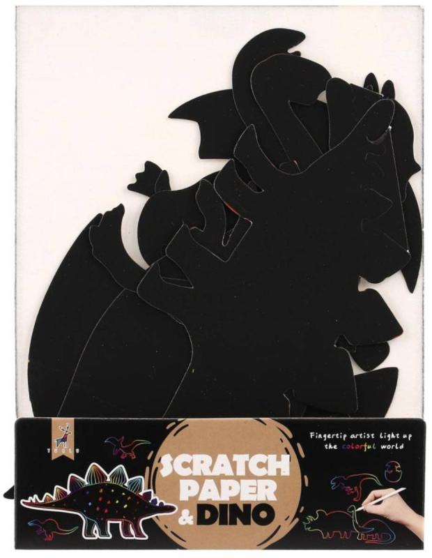 Obrázek škrabací duhový výřez dinosauři set 9ks s nástrojem