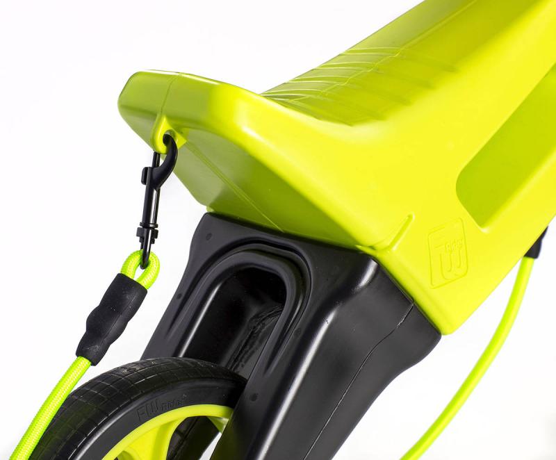 tak nemohou přetočit. Rukojeti řídítek jsou na konci rozšířené, a tím chrání dětské ruce před poraněním. Součástí popruh na přenášení - jednoduše si odrážedlo zavěsíte na rameno, a přitom máte obě ruce stále volné. Praktické, kdykoli potřebujete odrážedlo přemístit bez malého jezdce.