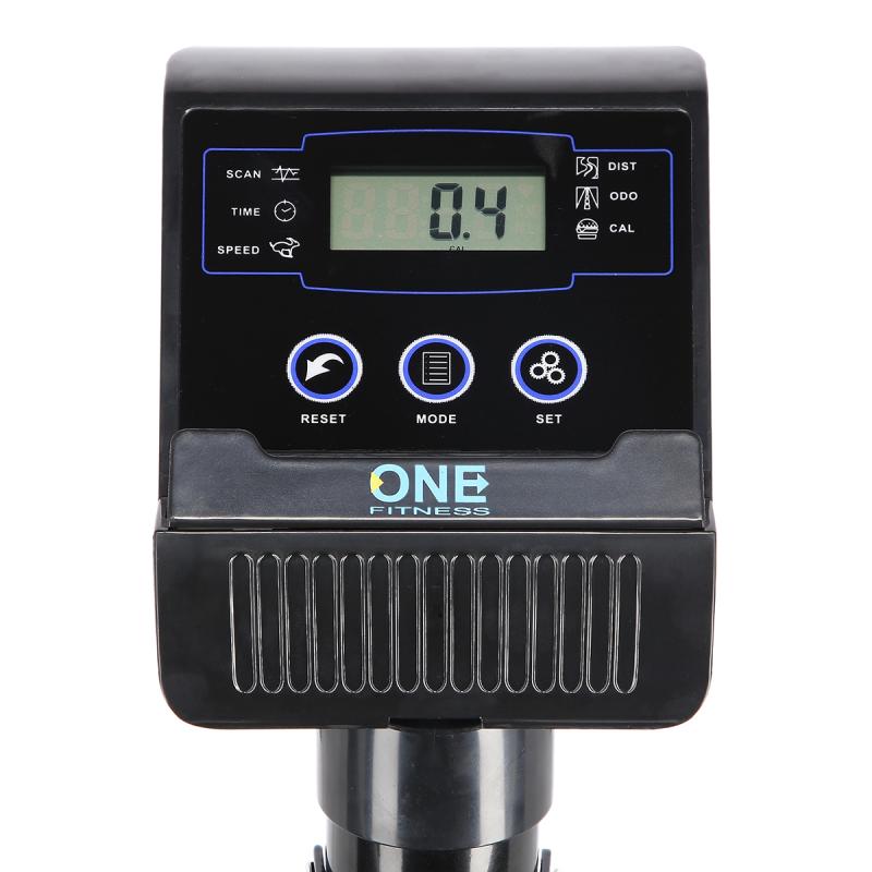 Mechanický rotoped ONE Fitness RW3011, ako už názov napovedá, má mechanický systém brzdenia bez záťažového kolesa. Prehľadný počítač zobrazuje všetky údaje potrebné pre prehľadný tréning - čas tréningu, rýchlosť, vzdialenosť, celková vzdialenosť a spálené kalórie. Konzola je vybavená držiakom mobilného zariadenia, do ktorého umiestnite tablet alebo telefón a počas tréningu môžete sledovať napríklad obľúbený seriál.
