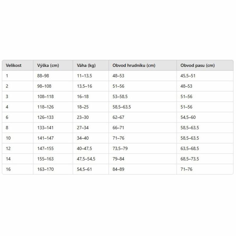 | Tabulka velikostí: | |