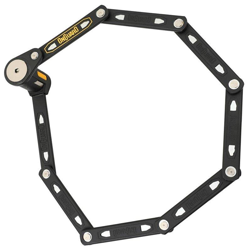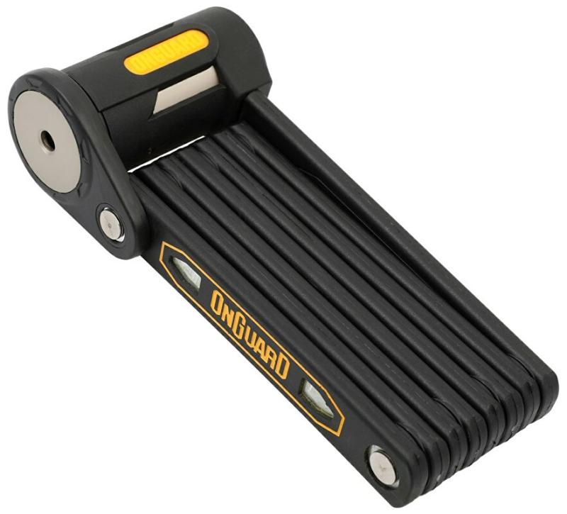 Efektívny, jednoduchý a vysoko účinný skladací zámok ONGUARD. Zámok je ľahký, ľahko použiteľný a ponúka zabezpečenie blížiace úrovni U-zámkov, ale s jednoduchšou manipuláciou, pri menších rozmeroch. Kalené články s dvojitým povlakom plastu a žltej gumy dokonale chránia pred odrením. Vhodný pre bicykle, motocykle, brány a ďalšie.