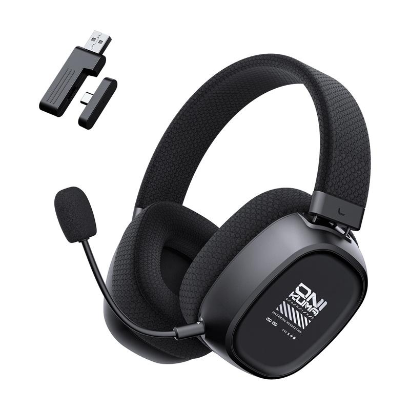ONIKUMA GT839 jsou špičková herní sluchátka, která nabízejí skvělou kvalitu zvuku, pohodlí a plnou kompatibilitu. Díky několika režimům připojení (Bluetooth 5.4, kabelové připojení a 2,4 GHz s adaptéry USB-A a USB-C) fungují s mnoha zařízeními dostupnými na trhu, jako jsou počítače, konzole, tablety a smartphony. Ponořte se do světa her bez prodlev a bez omezení!