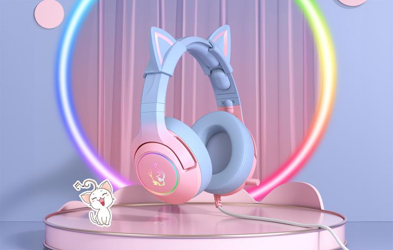 Sluchátka ONIKUMA K9 mají okouzlující jedinečný design - růžová a modrá barva, kočičí uši, světelné prvky a kočičí podobizna umístěná na obou sluchátkách vyjadřují něhu, dívčí výjimečnost, jedinečnost a lásku k zábavě a zvířatům! Ukažte světu svou okouzlující osobnost ještě dnes díky stylovému designu a možnosti měnit barvu světel!
