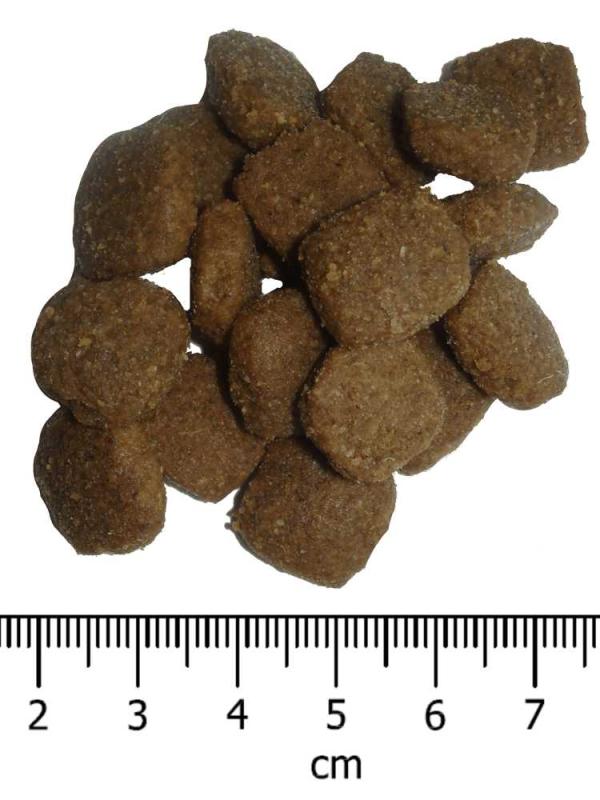 Analytické složky: Hrubý protein 32 %, hrubý olej a tuky 22 %, EPA+DHA 400 mg / kg, hrubá vláknina 2 %, hrubý popel 8 %, vápník 1,25 %, fosfor 1 %.