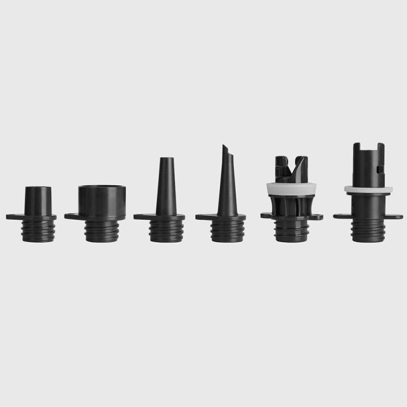 Součástí balení jsou hadice, různé adaptéry pro široké použití, USB-C na USB-A nabíjecí kabel, náhradní těsnění a podrobný návod k použití. Díky přiloženým redukcím lze pumpu využít nejen na paddleboardy, ale i na nafukovací lehátka, bazény, kajaky a další nafukovací vybavení.