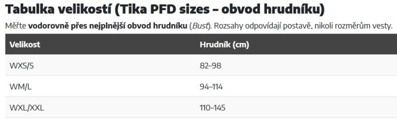 Výtlak WXS/S: 40 N • WM/L: 45 N • WXL/XXL: 50 N